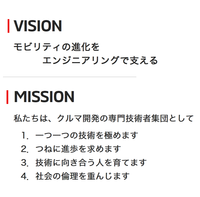 当社はこのビジョン、ミッションを基軸に今後も自動車開発業務を通じて進化をし続けてまいります。