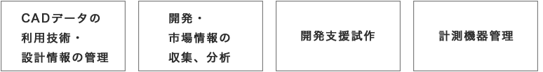 競合車や技術動向など開発情報の収集・分析をはじめ、CADデータの利用技術や品質改善など、クルマの開発に関するさまざまな支援業務を展開。また、開発確認用部品の試作や、設計に関わる情報の管理、計測機器の検査・管理なども行います。